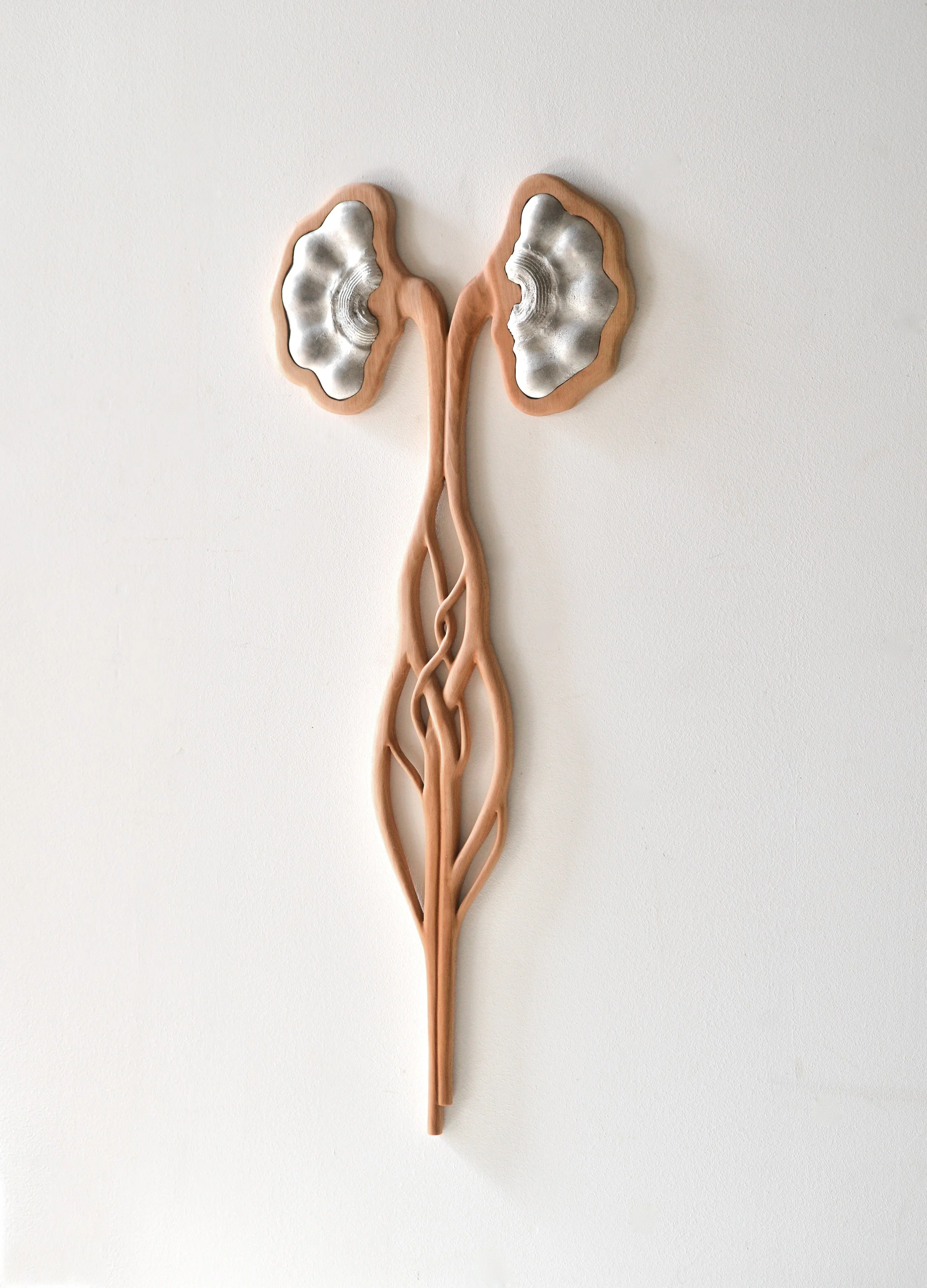 Anastasia Simonin & Kazuo Marsden, Love is in the air, 2024, Bois, noyer, étain, 60×12×3cm