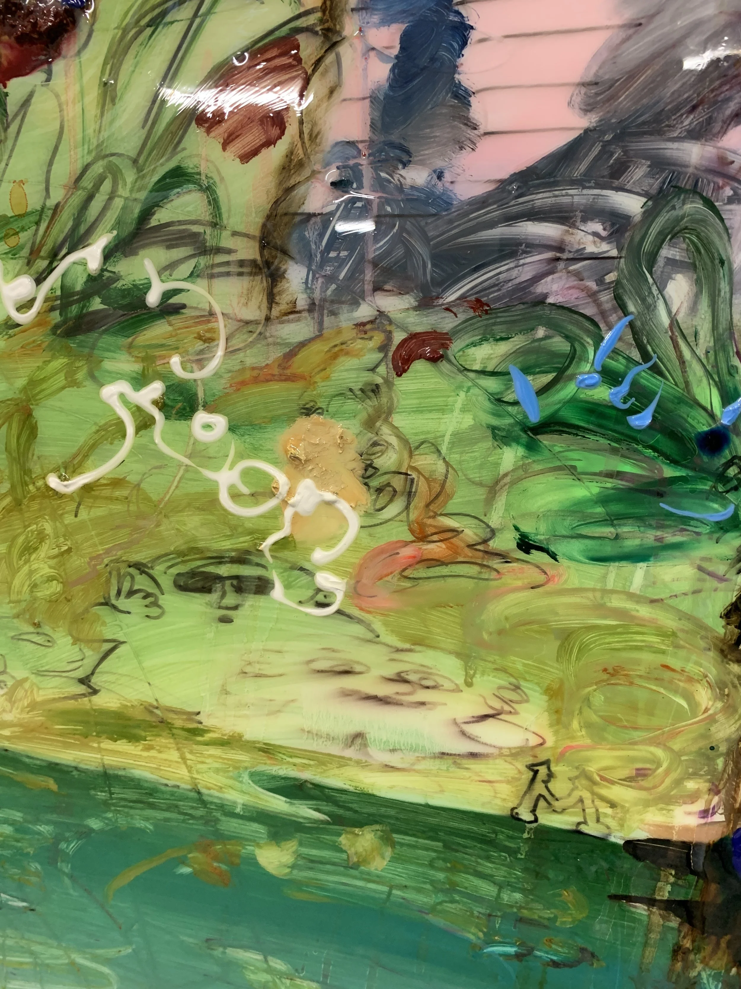 Louis Lanne, Reflets furieux, 2024, Technique mixte sur tableau blanc magnétique, 150x120cm